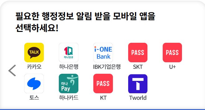 필요한 행정정보를 알려주는 앱으로 건강검진, 과태료 납부 알림부터 민원사무안내 상담까지 ~~ 가입하면 생활 행정정보를 편리하게 알림 받을 수7월14일 부터 7월31일까지 가입 이벤트도 진행 중이오니 확인하시고 가입해 보시면 편리 할겁니다.