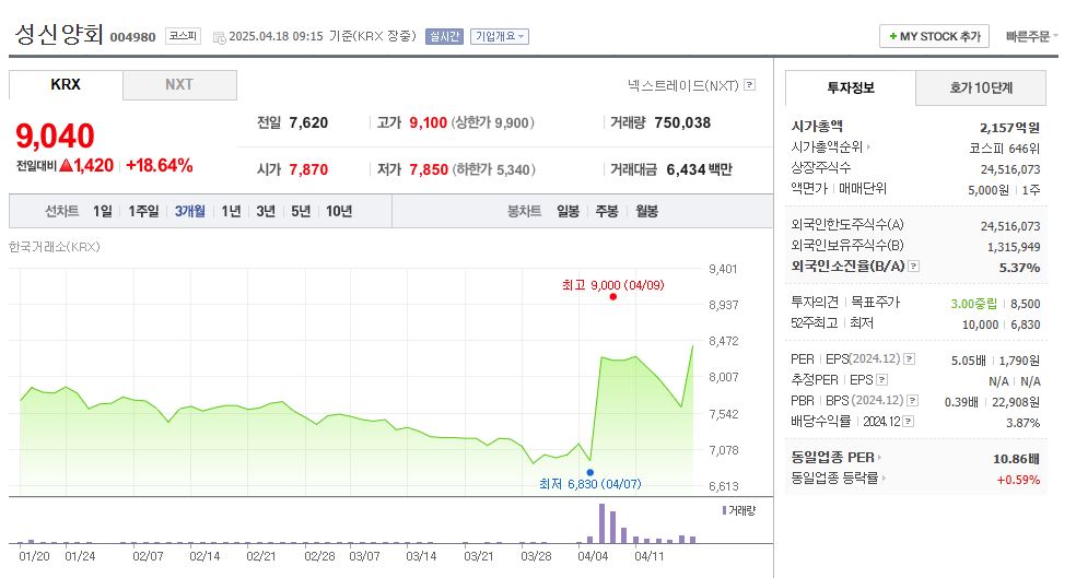 • 최근 시황: 주가 18,550원(2025년 4월 기준), 시가총액 약 1,657억 원, 안정적인 실적 흐름