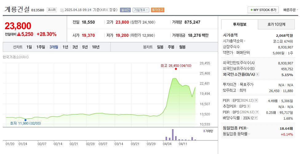 - 최근 시황: 주가 18,550원(2025년 4월 기준), 시가총액 약 1,657억 원, 안정적인 실적 흐름