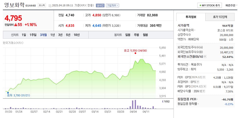 영보화학 시세 확인하기