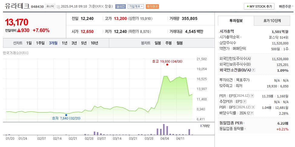 1. 유라테크 (048430)