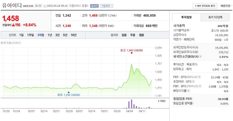 유아이디는 기술주이자 인프라 연계형 세종시 이전 관련주로, 중장기 성장이 가능한 종목입니다.