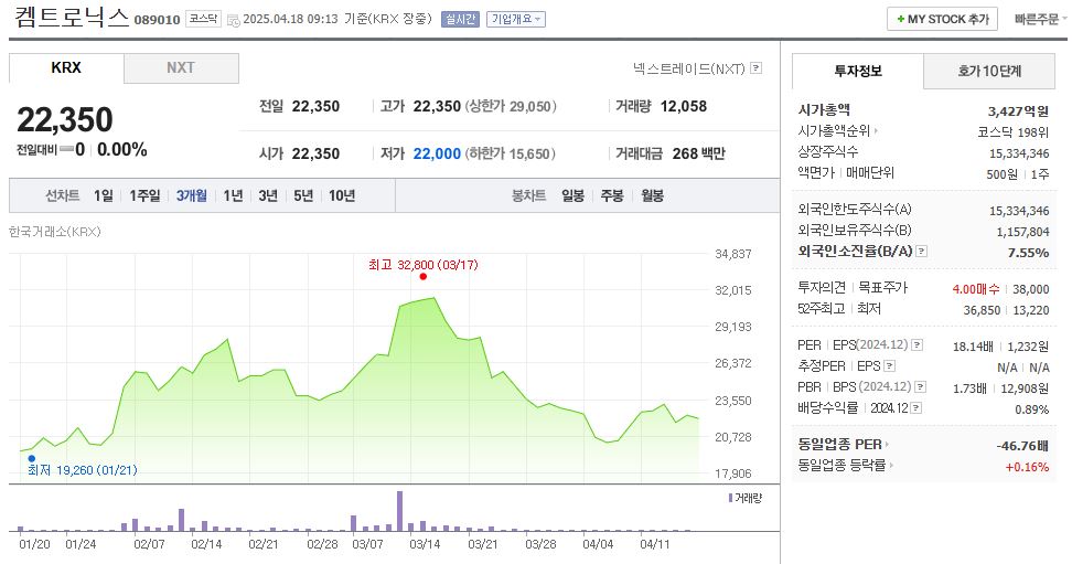 켐트로닉스 주가 확인하기