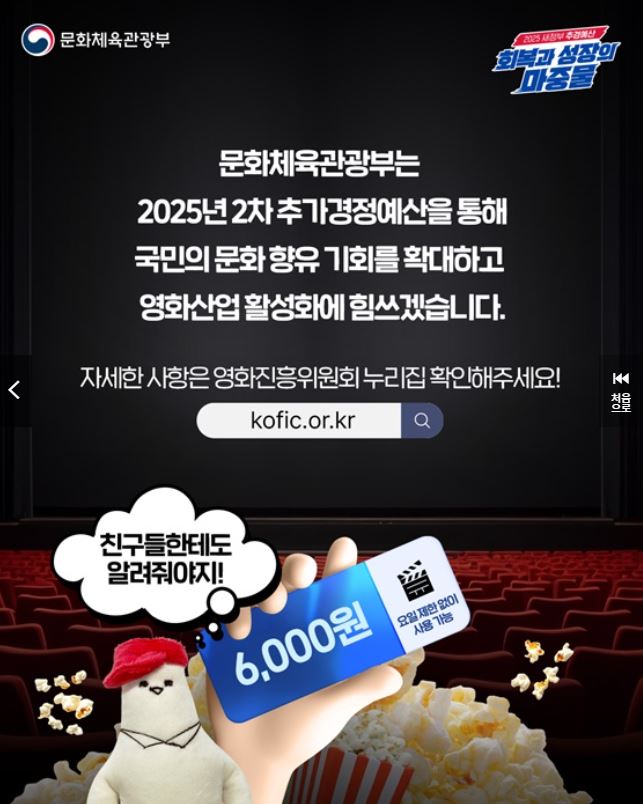 뜨거운 여름, 더위를 피해 시원한 영화관으로 향하는 이들이 많습니다. 여기에 반가운 소식이 더해졌습니다. 영화 할인 혜택으로 무려 6000원을 아낄 수 있는 이벤트가 시작되었기 때문입니다. 문화체육관광부(문체부)는 국민들의 문화 향유 기회를 확대하고자 대규모 문체부 영화 할인 캠페인을 진행하고 있습니다.