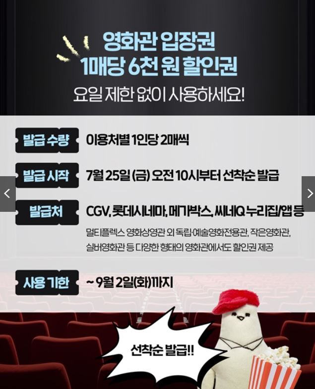| 발 급 처 | CGV, 롯데시네마, 메가박스, 씨네Q누리집/앱 등. |
