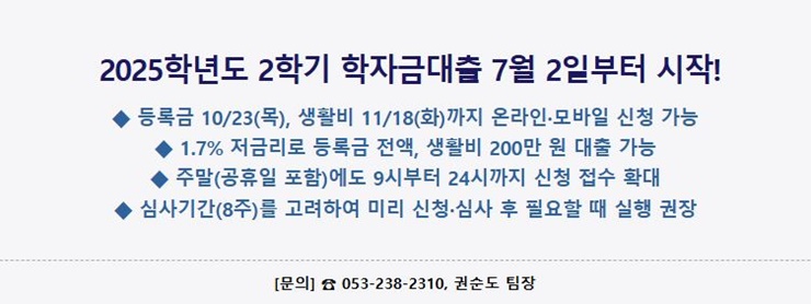 2025학년도 2학기 학자금 대출 신청이 시작되었습니다. 이번 학기에는 저금리 유지와 더불어 주말 및 공휴일에도 신청할 수 있어 많은 학생들의 관심을 끌고 있습니다. 오늘은 학자금 대출의 신청방법, 이자, 상환방법, 한도, 그리고 국가장학금과의 비교까지 자세히 안내해 드리겠습니다.