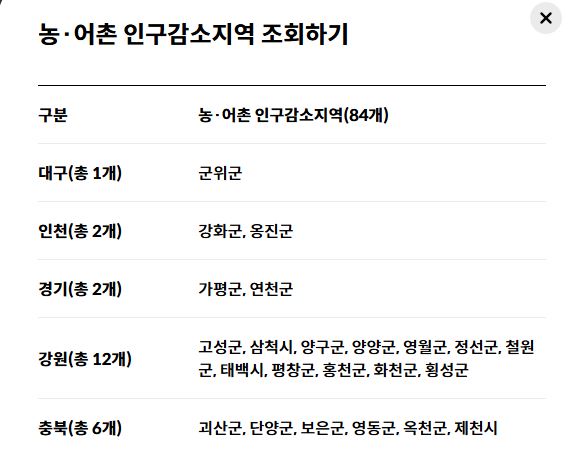 농·어촌 인구감소지역(84개 시·군) : 1인당 5만 원 추가 지급