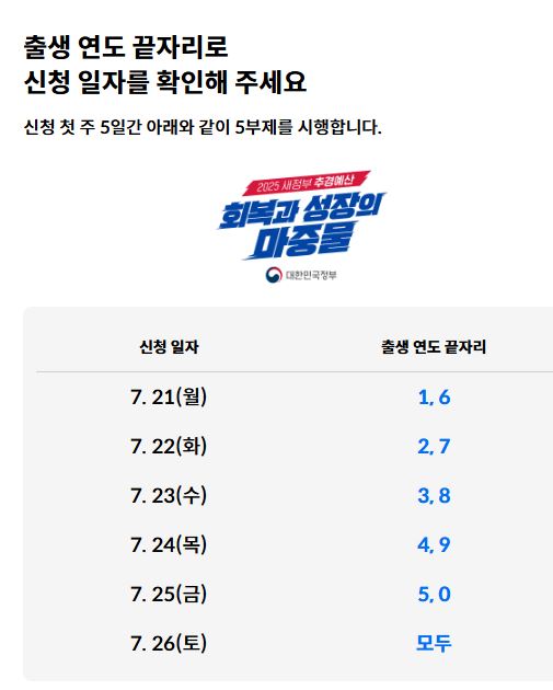 민생회복 소비쿠폰 신청 인 출생연도 끝자리로 신청일자 꼭 확인해 주세요.