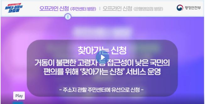 - 주민센터 방문 또는 ‘찾아가는 서비스’ 신청